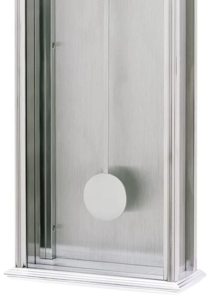With its clean lines and monochrome color palette of silver and gray tones, this wall clock harmonizes with both modern and classic interiors. The gently swinging pendulum lends the clock a soothing dynamism and emphasizes its majestic presence on the wall.