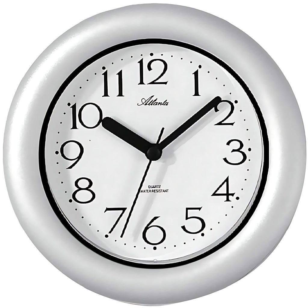 Atlanta Wall Clock 17 cm Ø Plastic • Silent Quartz Movement • Steam and Water Protected