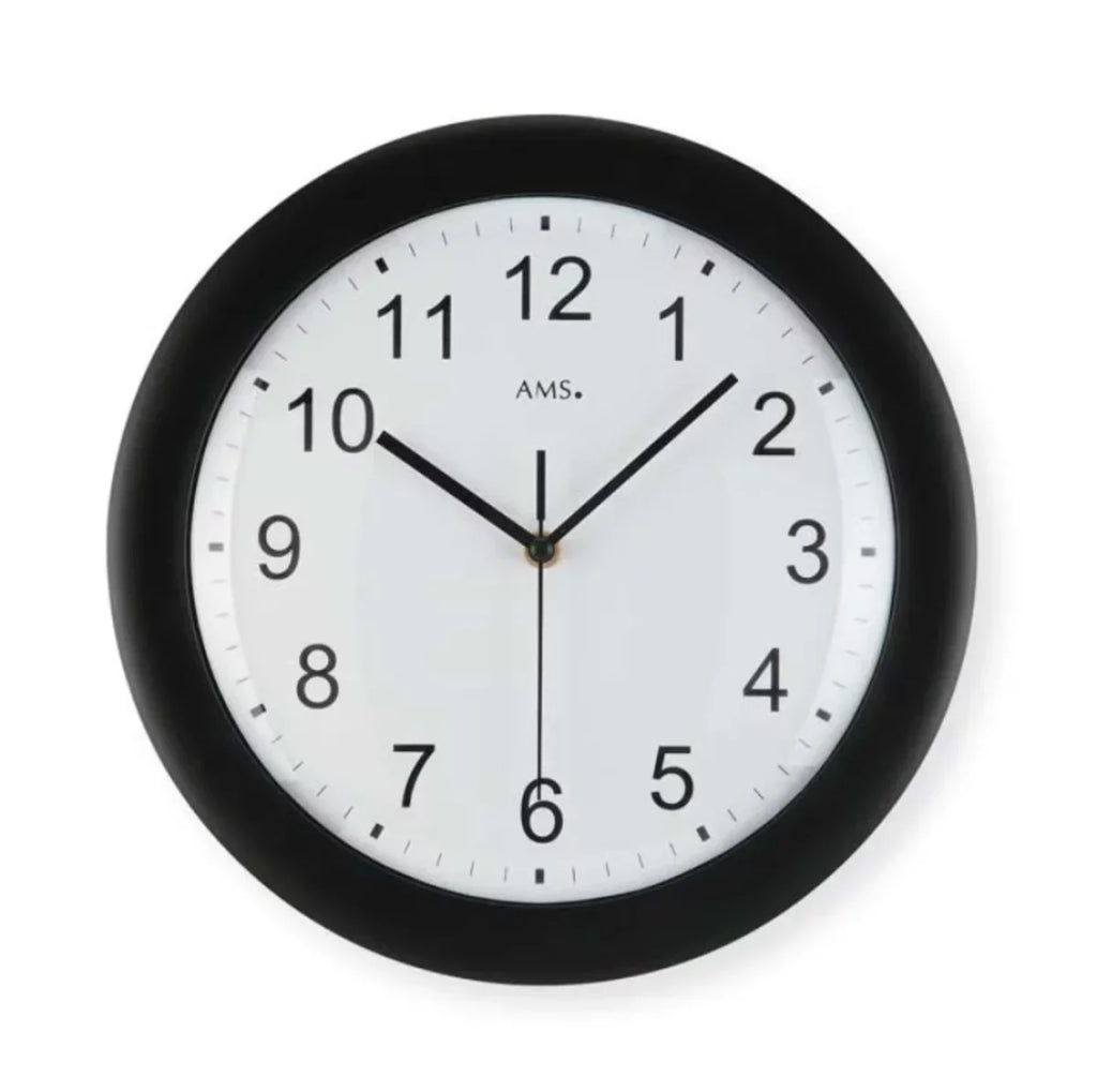 Die AMS Wanduhr 5935 steht für modernes, funktionales Design und verlässliche Technik – perfekt für alle, die eine schlichte, aber hochwertige Uhr für den Wohnbereich suchen. Das runde Gehäuse aus schwarzem Kunststoff bietet einen markanten Kontrast zum weißen Zifferblatt mit gut lesbaren, arabischen Zahlen. Durch ihre reduzierte Gestaltung fügt sich diese Funkuhr harmonisch in unterschiedlichste Einrichtungsstile ein – ob im Wohnzimmer, Flur oder Homeoffice.
