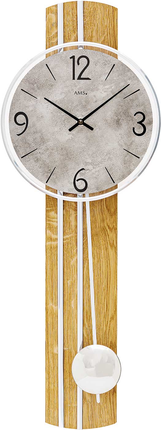 Im Inneren sorgt ein zuverlässiges Quarzpendelwerk für eine präzise Zeitmessung. Die analoge Anzeige mit Stunden- und Minutenzeiger wird von einem robusten Mineralglas geschützt. Ein feines Pendel rundet das Gesamtbild dieser eleganten Uhr harmonisch ab. Die AMS 7466 ist eine gelungene Kombination aus Funktion, Form und hochwertiger Verarbeitung – perfekt für alle, die modernes Wohnen mit natürlichen Materialien verbinden möchten.