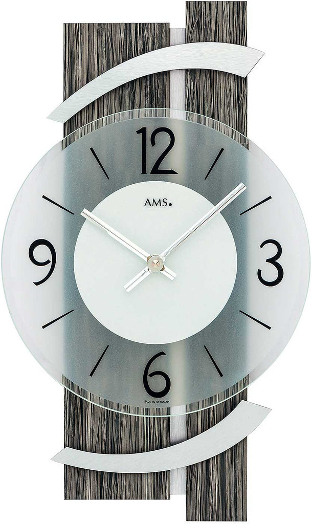 Die AMS 9547 ist eine moderne Wanduhr, die mit stilvoller Materialkombination, leiser Technik und raffinierter Transparenz überzeugt. Mit ihrem hochwertigen Holzgehäuse, Aluminium-Akzenten und einem semitransparenten Mineralglas-Zifferblatt fügt sich dieses Modell perfekt in designorientierte Wohnräume ein. Besonders ideal für Kunden, die Wert auf dezente Eleganz, klare Formen und lautlose Zeitangabe legen.