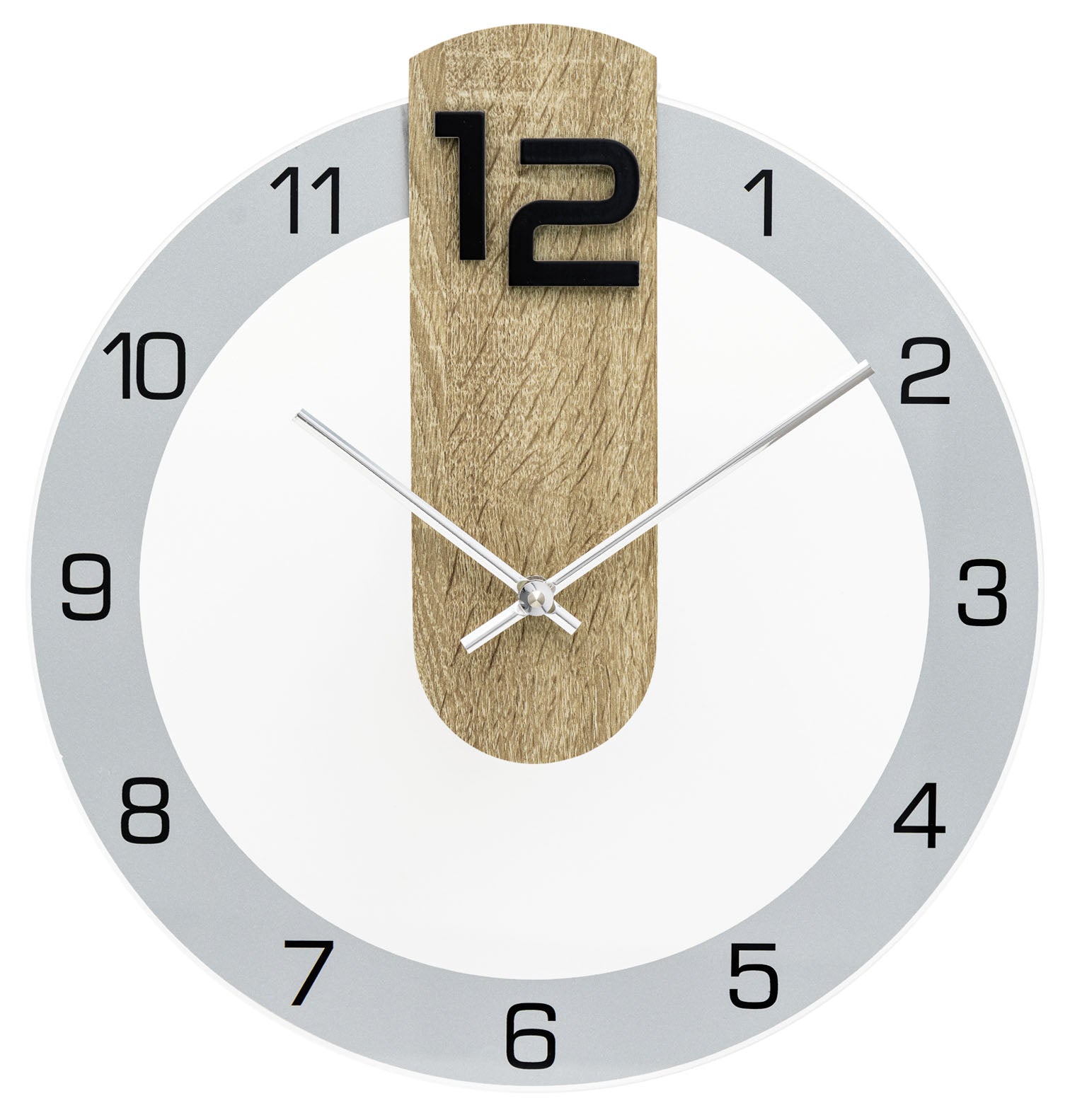 AMS Wanduhr W9711 • Quarzuhr • Sonoma-Eiche & Mineralglas