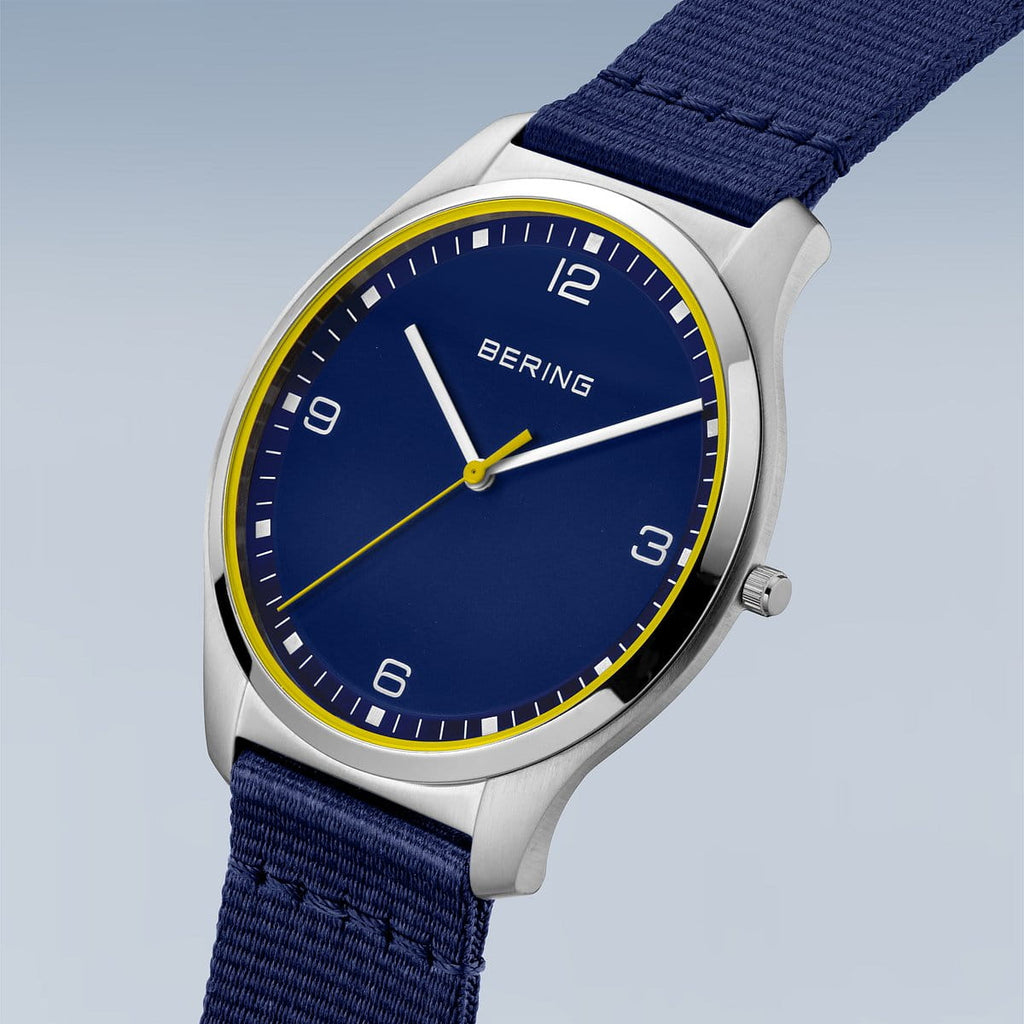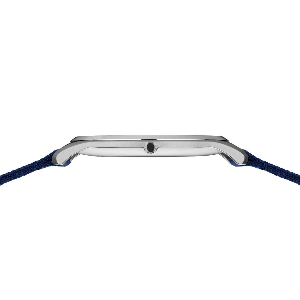 • Skandinavische Präzision trifft auf ein modernes Farbschema mit blauem Zifferblatt und silberfarbenem Edelstahlgehäuse.