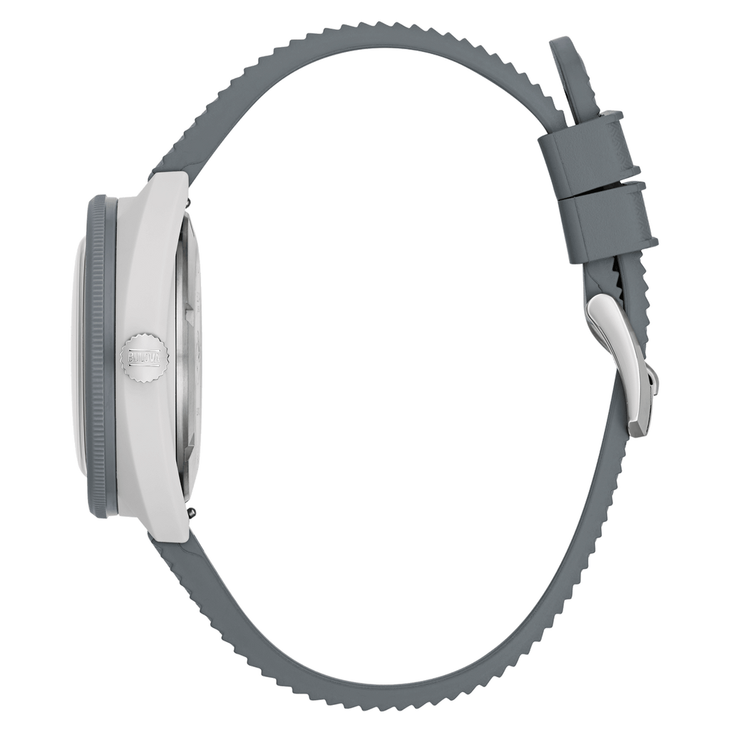 Diese markante Herrenuhr vereint modernes Design mit hoher Funktionalität und robuster Verarbeitung. Das weiße Zifferblatt mit klaren Strichindizes sorgt für eine ausgezeichnete Ablesbarkeit, während die blau-graue Drehlünette mit arabischen Ziffern und Strichindex der Uhr eine sportlich-dynamische Optik verleiht. Das silberfarbene Edelstahlgehäuse aus Hybrid-Keramik steht für Langlebigkeit und Widerstandsfähigkeit. Ergänzt wird das Design durch ein graues Kautschukarmband, das nicht nur optisch überzeugt, sondern auch hohen Tragekomfort und Flexibilität bietet. Damit ist diese Armbanduhr der perfekte Begleiter für Männer, die Wert auf Stil, Funktionalität und Alltagstauglichkeit legen.
