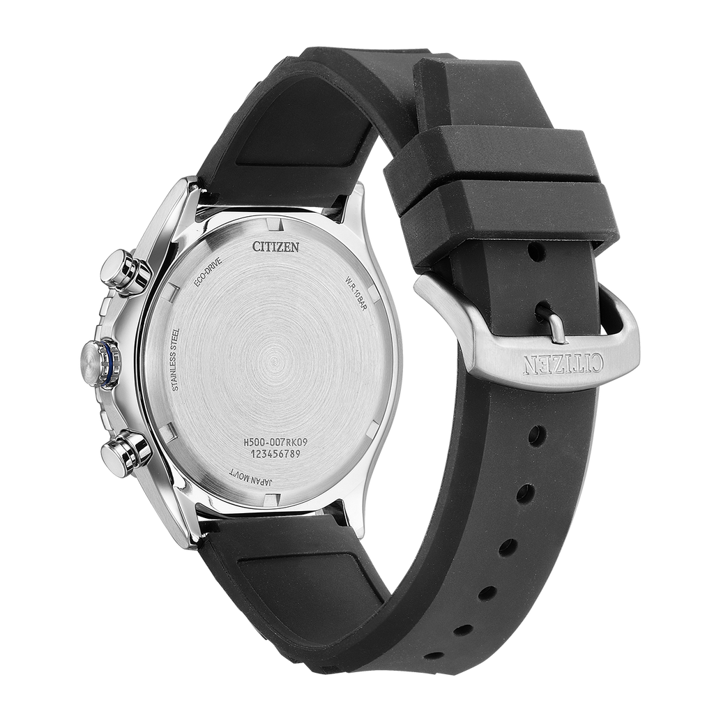 - Funktionen: Eco-Drive, Chronograph, 24h-Anzeige, Datum, Stoppuhr