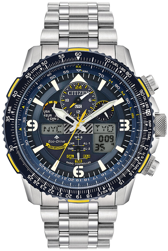 Blue Angels Edition, Eco-Drive, Radio-Controlled, Weltzeit, Perpetual Calendar, Chronograph, Rechenschieber-Lünette, Gangreserveanzeige |