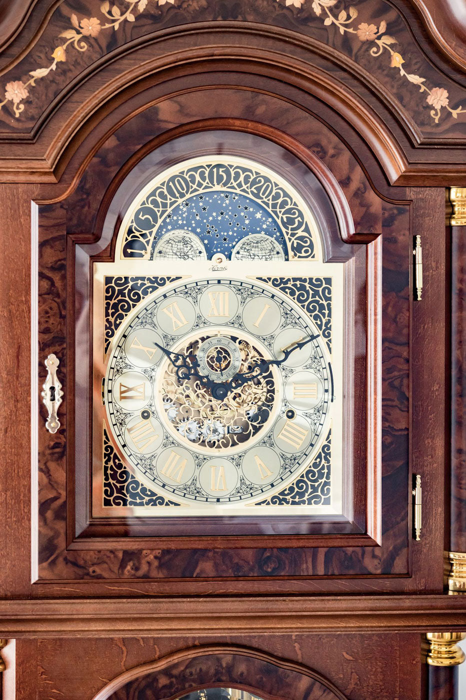 Erleben Sie die beeindruckende Präsenz und das beruhigende Läuten dieser Hermle Standuhr, die nicht nur die Zeit anzeigt, sondern auch ein Statement von Stil und Handwerkskunst in jedem Raum setzt.