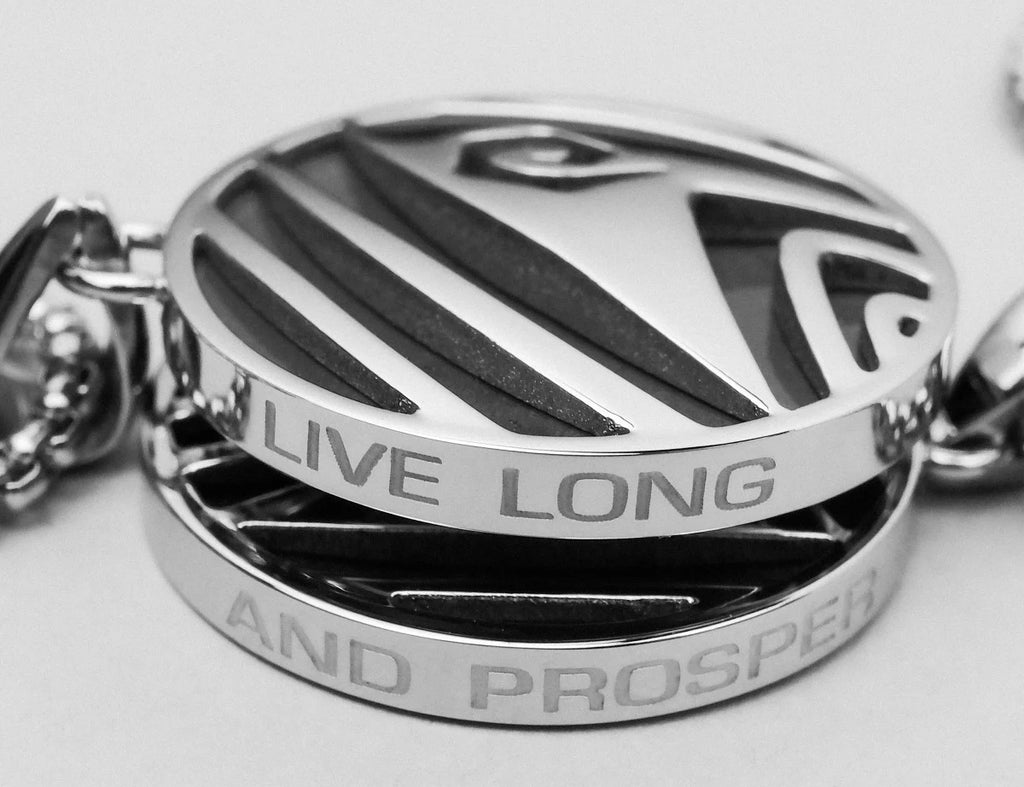 Der edle Anhänger aus echtem Jaspis trägt das klassische Operations-Abzeichen, während das eingravierte Star Trek™ Logo sowie der ikonische Leitspruch „Live Long and Prosper™“ die Verbindung zu den Werten der Sternenflotte eindrucksvoll unterstreichen.