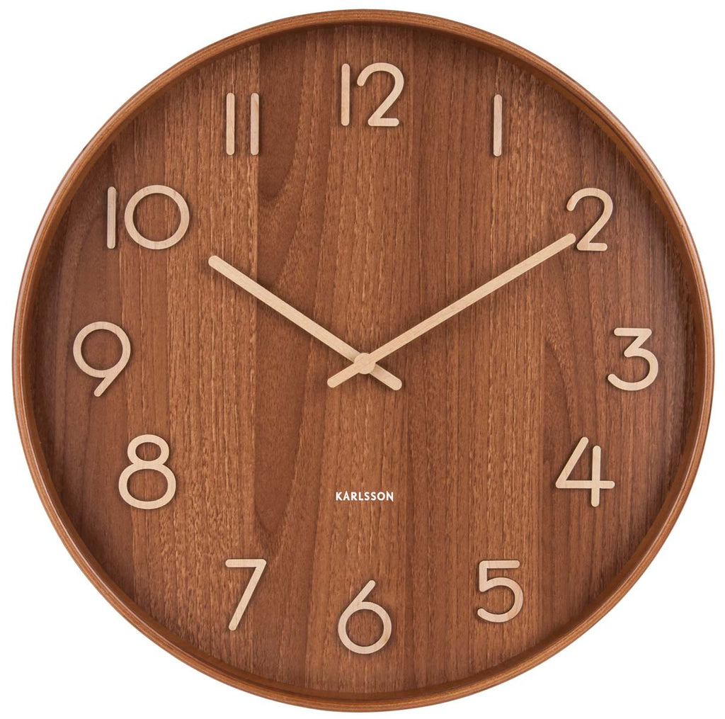 Karlsson Wanduhr 40x40x4,5 cm Holz • Modernes Design • Geräuscharmes Quarzuhrwerk