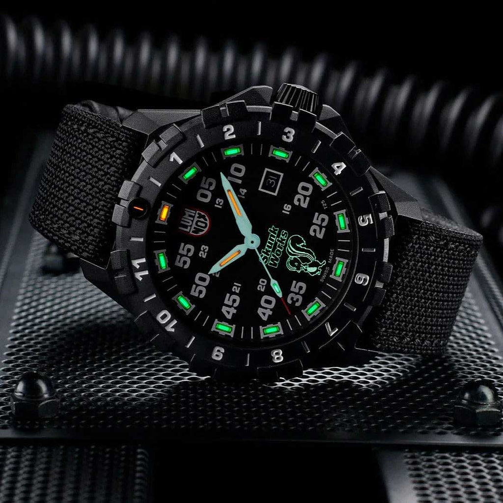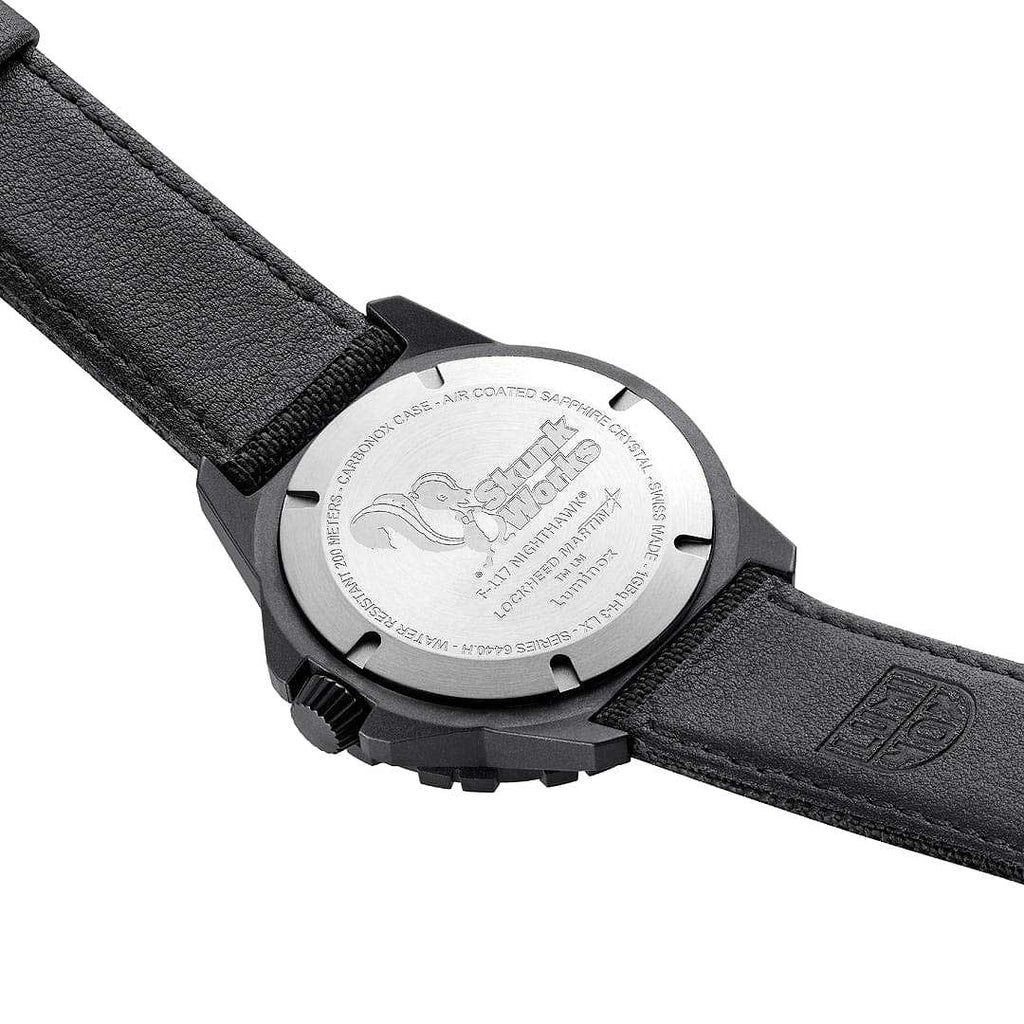 Diese Uhr gehört zur exklusiven F-117 Nighthawk X Skunk Works Kollektion von Luminox.