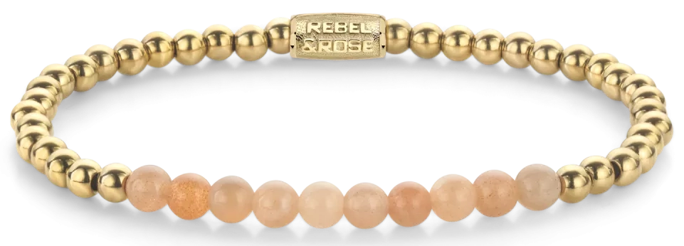 Rebel&Rose Armband RR-40139-G-M mit Sonnensteinperlen und goldplattierten Edelstahlsteinen
