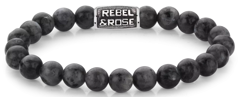 Rebel & Rose Armband RR-80097-V-M – Herrenarmband aus grauen Larvikit-Edelsteinen