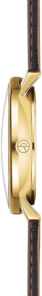 Ein braunes Lederarmband mit sichtbarer Naht verleiht der Uhr einen klassischen Touch und sorgt für hohen Tragekomfort. Die Uhr verfügt über eine Datumsanzeige bei der 3-Uhr-Position und Luminova-Zeiger, die auch bei Dunkelheit gut ablesbar sind.